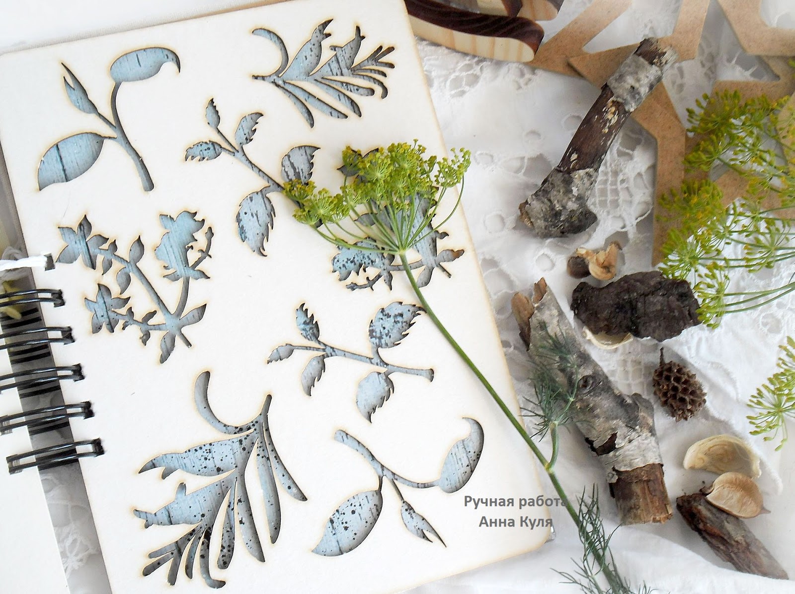 Спасибо дизайнерам блога и Алсу за проект за разнообразную информацию, их проекты были с интересными приемами, придумками. В рамках своего участия я придерживалась привычных техник, фишками стали имитации деревянных спилов и листьев, которые получились довольно реалистичными. К концу проекта осознала, что не использовала ни одного штампа и минимум красок, только для брызг, что вообщем-то удивительное дело для меня) Результатом довольна, блокнот получился уютным, домашним, его приятно держать в руках...